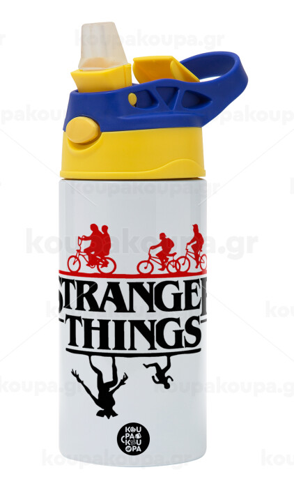 Stranger Things upside down, Παιδικό παγούρι θερμό, ανοξείδωτο, με καλαμάκι ασφαλείας, πράσινο/μπλε (360ml) BPA FREE