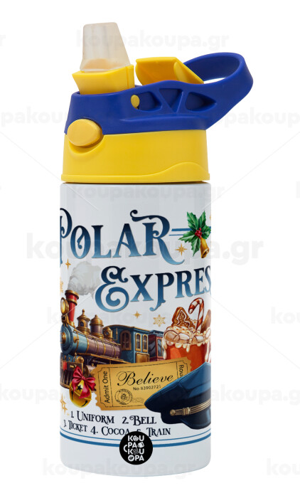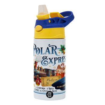 The Polar Express, Παιδικό παγούρι θερμό, ανοξείδωτο, με καλαμάκι ασφαλείας, πράσινο/μπλε (360ml) BPA FREE
