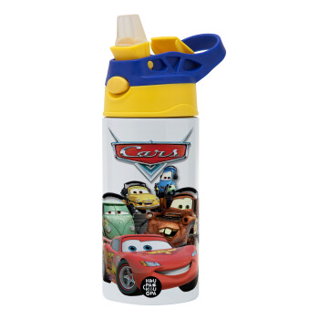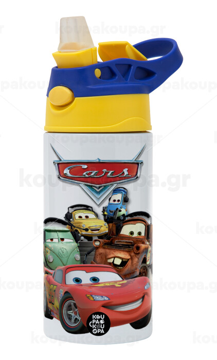 Αυτοκίνητα, Παιδικό παγούρι θερμό, ανοξείδωτο, με καλαμάκι ασφαλείας, πράσινο/μπλε (360ml) BPA FREE