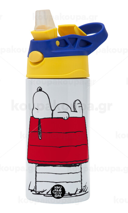 Το σπίτι του snoopy, Παιδικό παγούρι θερμό, ανοξείδωτο, με καλαμάκι ασφαλείας, πράσινο/μπλε (360ml) BPA FREE