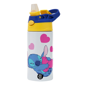 Lilo & Stitch hugs and hearts, Παιδικό παγούρι θερμό, ανοξείδωτο, με καλαμάκι ασφαλείας, πράσινο/μπλε (360ml) BPA FREE