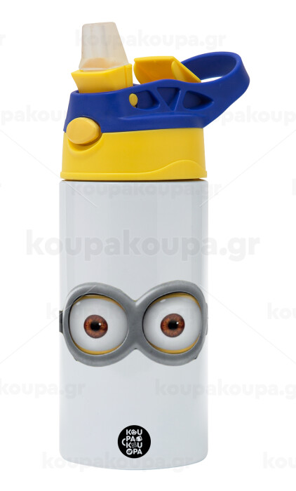 Minions, Παιδικό παγούρι θερμό, ανοξείδωτο, με καλαμάκι ασφαλείας, πράσινο/μπλε (360ml) BPA FREE