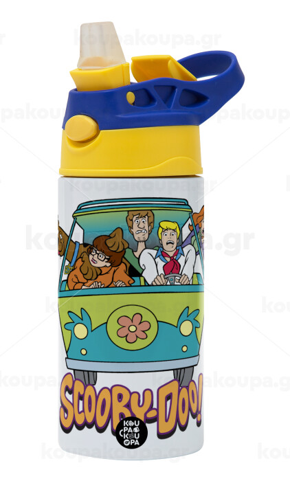 Scooby Doo car, Παιδικό παγούρι θερμό, ανοξείδωτο, με καλαμάκι ασφαλείας, πράσινο/μπλε (360ml) BPA FREE