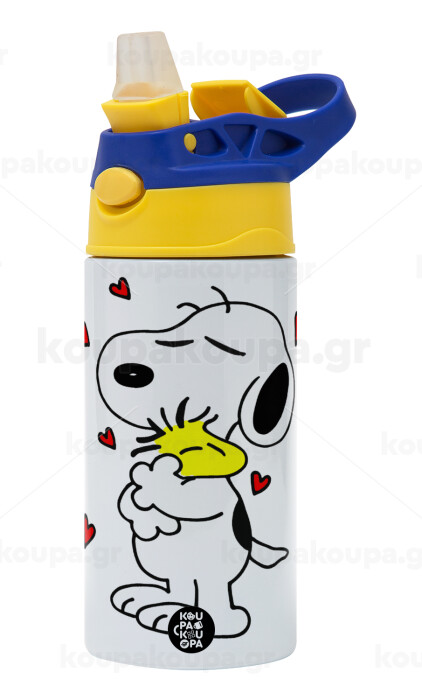 Snoopy Love, Παιδικό παγούρι θερμό, ανοξείδωτο, με καλαμάκι ασφαλείας, πράσινο/μπλε (360ml) BPA FREE