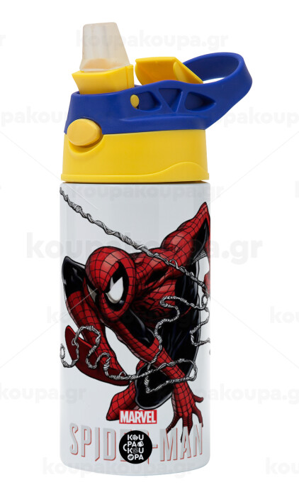 Spider-man, Παιδικό παγούρι θερμό, ανοξείδωτο, με καλαμάκι ασφαλείας, πράσινο/μπλε (360ml) BPA FREE
