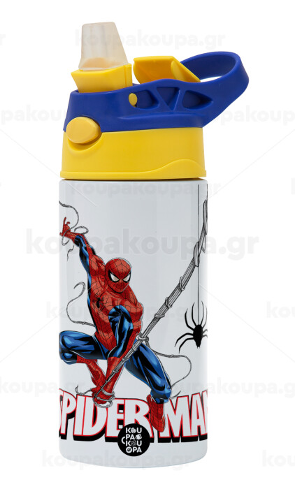 Spiderman fly, Παιδικό παγούρι θερμό, ανοξείδωτο, με καλαμάκι ασφαλείας, πράσινο/μπλε (360ml) BPA FREE