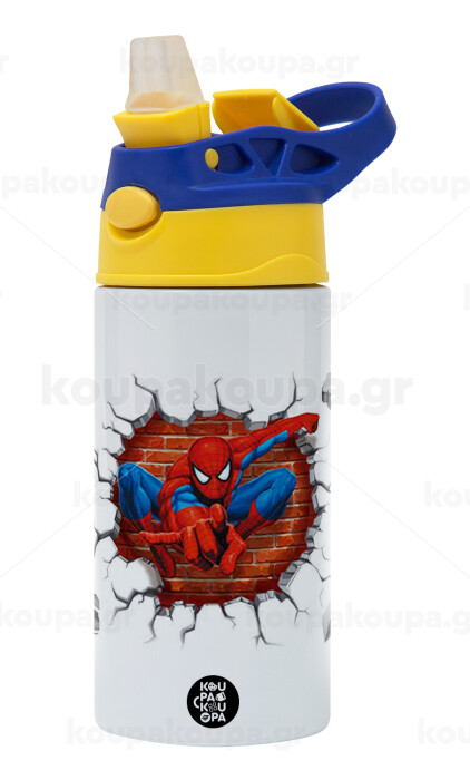 Spiderman wall, Παιδικό παγούρι θερμό, ανοξείδωτο, με καλαμάκι ασφαλείας, πράσινο/μπλε (360ml) BPA FREE