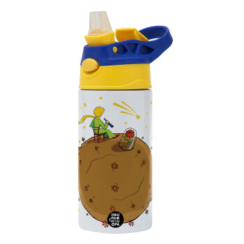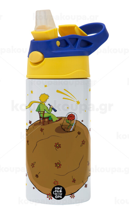Ο μικρός πρίγκιπας planet, Παιδικό παγούρι θερμό, ανοξείδωτο, με καλαμάκι ασφαλείας, πράσινο/μπλε (360ml) BPA FREE