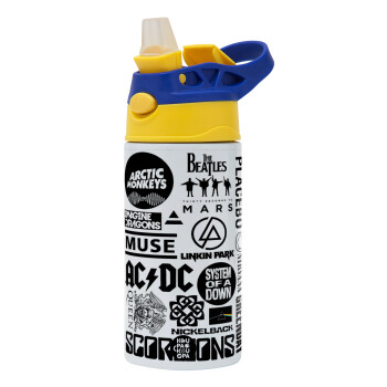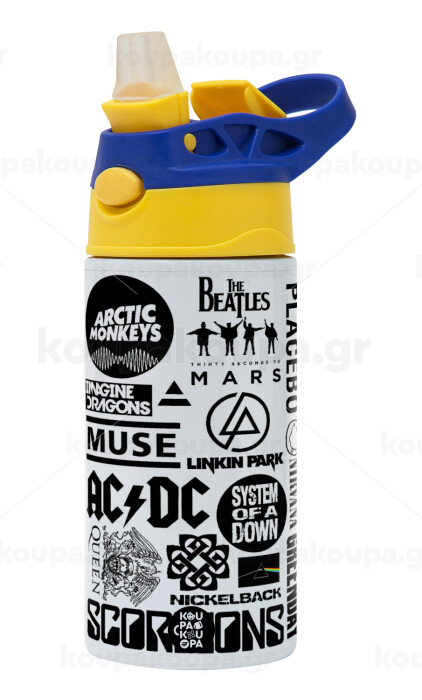 Best Rock Bands Collection, Παιδικό παγούρι θερμό, ανοξείδωτο, με καλαμάκι ασφαλείας, πράσινο/μπλε (360ml) BPA FREE