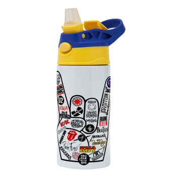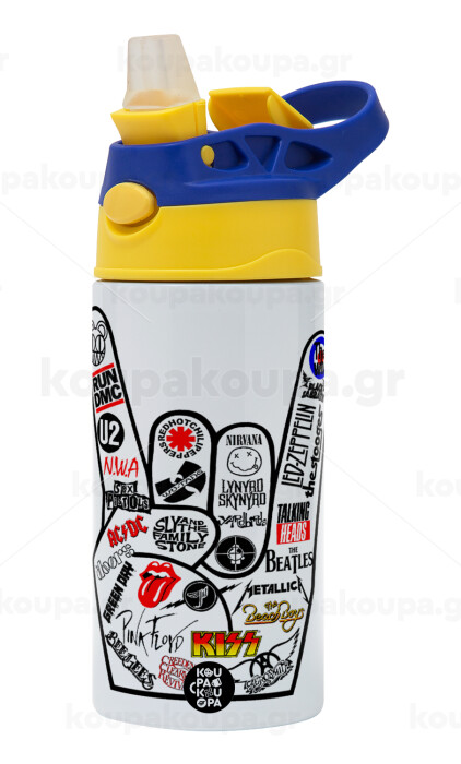 Best Rock Bands hand, Παιδικό παγούρι θερμό, ανοξείδωτο, με καλαμάκι ασφαλείας, πράσινο/μπλε (360ml) BPA FREE