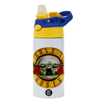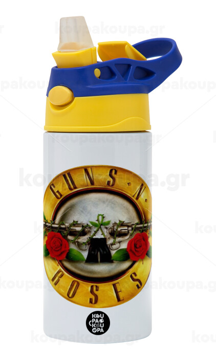 Guns N' Roses, Παιδικό παγούρι θερμό, ανοξείδωτο, με καλαμάκι ασφαλείας, πράσινο/μπλε (360ml) BPA FREE