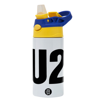 U2 , Παιδικό παγούρι θερμό, ανοξείδωτο, με καλαμάκι ασφαλείας, πράσινο/μπλε (360ml) BPA FREE