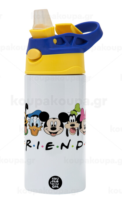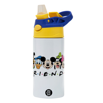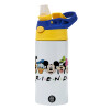 Friends characters, Παιδικό παγούρι θερμό, ανοξείδωτο, με καλαμάκι ασφαλείας, πράσινο/μπλε (360ml) BPA FREE