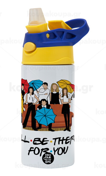 Friends cover, Παιδικό παγούρι θερμό, ανοξείδωτο, με καλαμάκι ασφαλείας, πράσινο/μπλε (360ml) BPA FREE