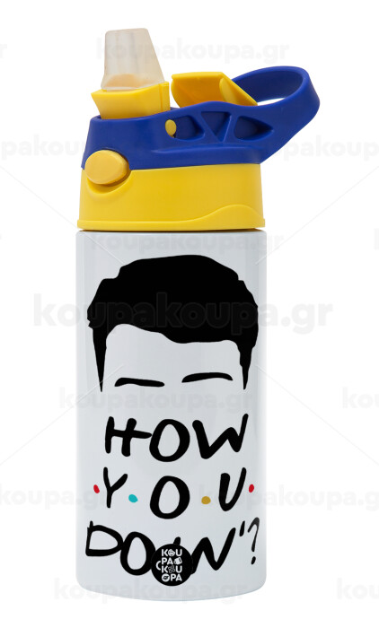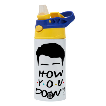 Friends how you doin?, Παιδικό παγούρι θερμό, ανοξείδωτο, με καλαμάκι ασφαλείας, πράσινο/μπλε (360ml) BPA FREE