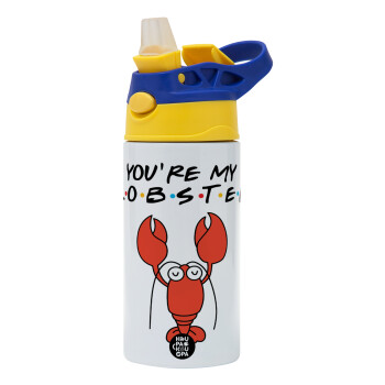 Friends you're my lobster, Παιδικό παγούρι θερμό, ανοξείδωτο, με καλαμάκι ασφαλείας, πράσινο/μπλε (360ml) BPA FREE