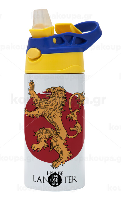 House Lannister GOT, Παιδικό παγούρι θερμό, ανοξείδωτο, με καλαμάκι ασφαλείας, πράσινο/μπλε (360ml) BPA FREE