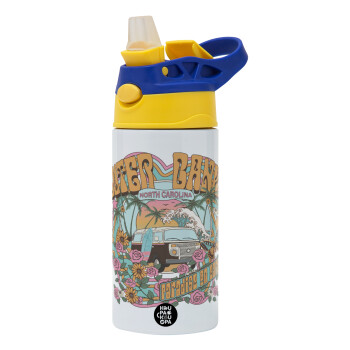 Outerbanks paradise on earth, Παιδικό παγούρι θερμό, ανοξείδωτο, με καλαμάκι ασφαλείας, πράσινο/μπλε (360ml) BPA FREE