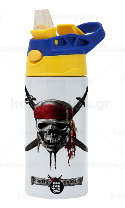 Pirates of the Caribbean, Παιδικό παγούρι θερμό, ανοξείδωτο, με καλαμάκι ασφαλείας, πράσινο/μπλε (360ml) BPA FREE
