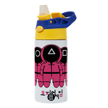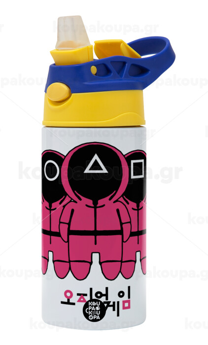 The squid game, Παιδικό παγούρι θερμό, ανοξείδωτο, με καλαμάκι ασφαλείας, πράσινο/μπλε (360ml) BPA FREE