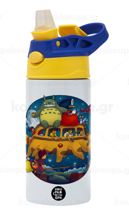 Totoro Catbus, Παιδικό παγούρι θερμό, ανοξείδωτο, με καλαμάκι ασφαλείας, πράσινο/μπλε (360ml) BPA FREE