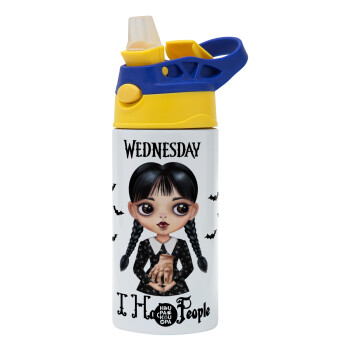 Wednesday Adams, i hate people, Παιδικό παγούρι θερμό, ανοξείδωτο, με καλαμάκι ασφαλείας, πράσινο/μπλε (360ml) BPA FREE
