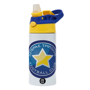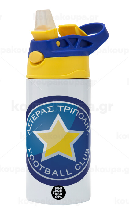 Αστέρας Τρίπολης, Παιδικό παγούρι θερμό, ανοξείδωτο, με καλαμάκι ασφαλείας, πράσινο/μπλε (360ml) BPA FREE