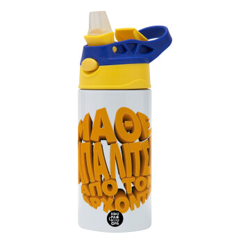 Μάθε μπαλίτσα από τον Άρχοντα, Παιδικό παγούρι θερμό, ανοξείδωτο, με καλαμάκι ασφαλείας, πράσινο/μπλε (360ml) BPA FREE