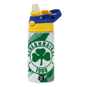 Π.Α.Ο., Παιδικό παγούρι θερμό, ανοξείδωτο, με καλαμάκι ασφαλείας, πράσινο/μπλε (360ml) BPA FREE