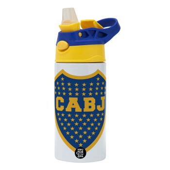 Club Atlético Boca Juniors, Παιδικό παγούρι θερμό, ανοξείδωτο, με καλαμάκι ασφαλείας, πράσινο/μπλε (360ml) BPA FREE