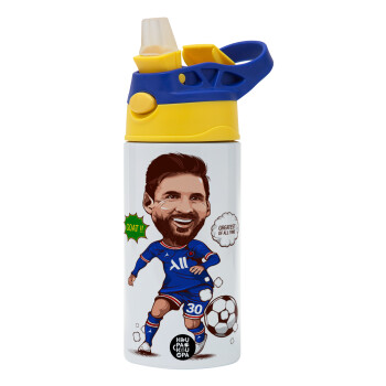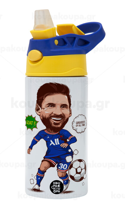 Lionel Messi drawing, Παιδικό παγούρι θερμό, ανοξείδωτο, με καλαμάκι ασφαλείας, πράσινο/μπλε (360ml) BPA FREE