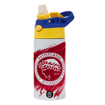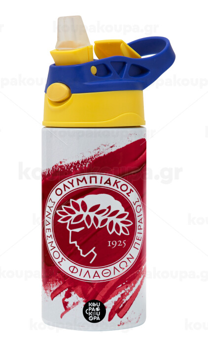 Olympiacos F.C., Παιδικό παγούρι θερμό, ανοξείδωτο, με καλαμάκι ασφαλείας, πράσινο/μπλε (360ml) BPA FREE