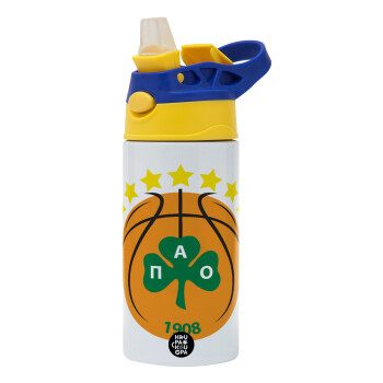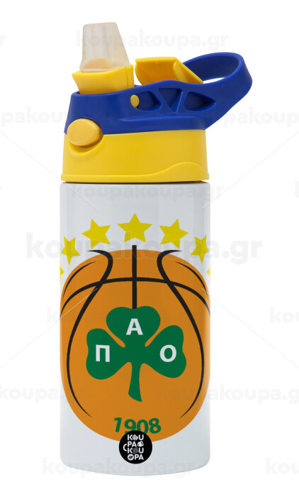 ΠΑΟ BC, Παιδικό παγούρι θερμό, ανοξείδωτο, με καλαμάκι ασφαλείας, πράσινο/μπλε (360ml) BPA FREE