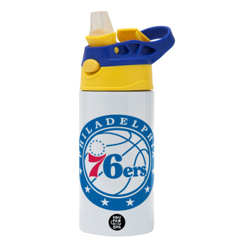 Philadelphia 76ers, Παιδικό παγούρι θερμό, ανοξείδωτο, με καλαμάκι ασφαλείας, πράσινο/μπλε (360ml) BPA FREE