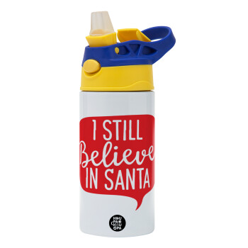 Ι still believe in santa, Παιδικό παγούρι θερμό, ανοξείδωτο, με καλαμάκι ασφαλείας, πράσινο/μπλε (360ml) BPA FREE