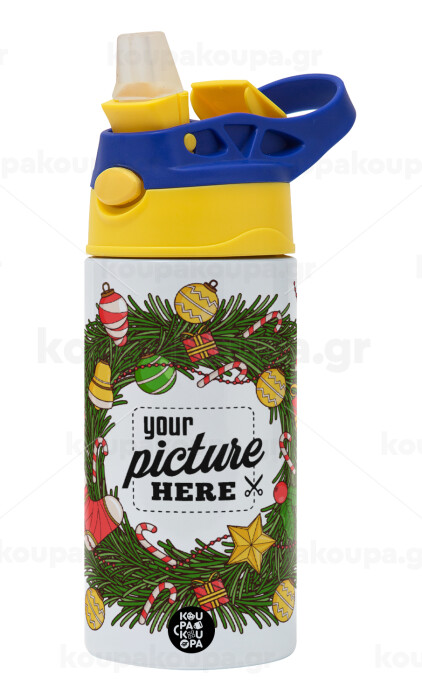 PHOTO Christmas twitch, Παιδικό παγούρι θερμό, ανοξείδωτο, με καλαμάκι ασφαλείας, πράσινο/μπλε (360ml) BPA FREE