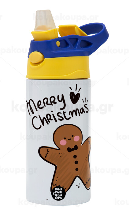 mr gingerbread, Παιδικό παγούρι θερμό, ανοξείδωτο, με καλαμάκι ασφαλείας, πράσινο/μπλε (360ml) BPA FREE