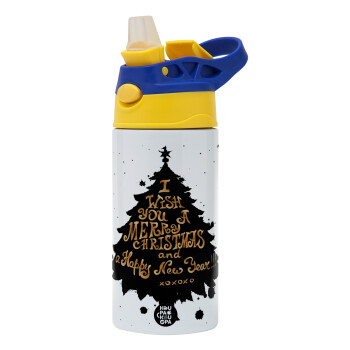 Tree, i wish you a merry christmas and a Happy New Year!!! xoxoxo, Παιδικό παγούρι θερμό, ανοξείδωτο, με καλαμάκι ασφαλείας, πράσινο/μπλε (360ml) BPA FREE