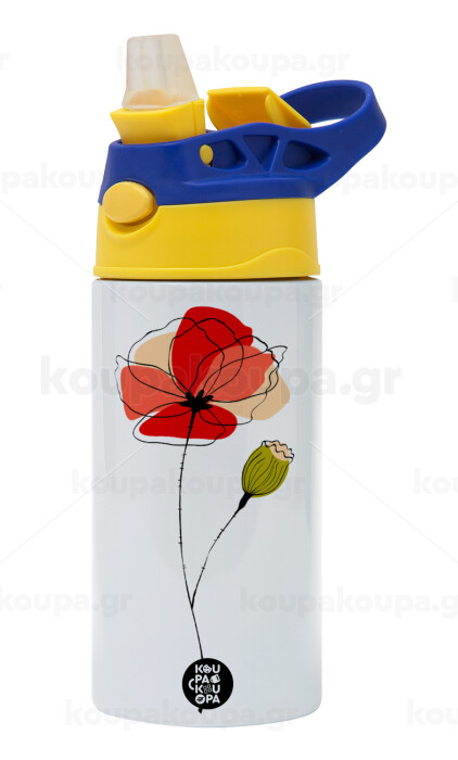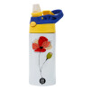Red poppy flowers papaver, Παιδικό παγούρι θερμό, ανοξείδωτο, με καλαμάκι ασφαλείας, πράσινο/μπλε (360ml) BPA FREE