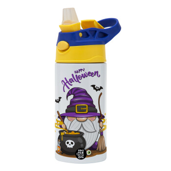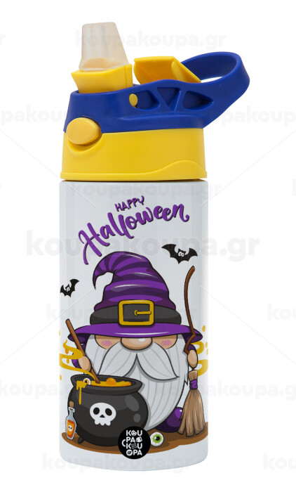 Happy Halloween (Χαλοουίν), Παιδικό παγούρι θερμό, ανοξείδωτο, με καλαμάκι ασφαλείας, πράσινο/μπλε (360ml) BPA FREE