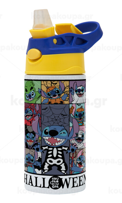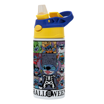 Stitch Halloween, Παιδικό παγούρι θερμό, ανοξείδωτο, με καλαμάκι ασφαλείας, πράσινο/μπλε (360ml) BPA FREE