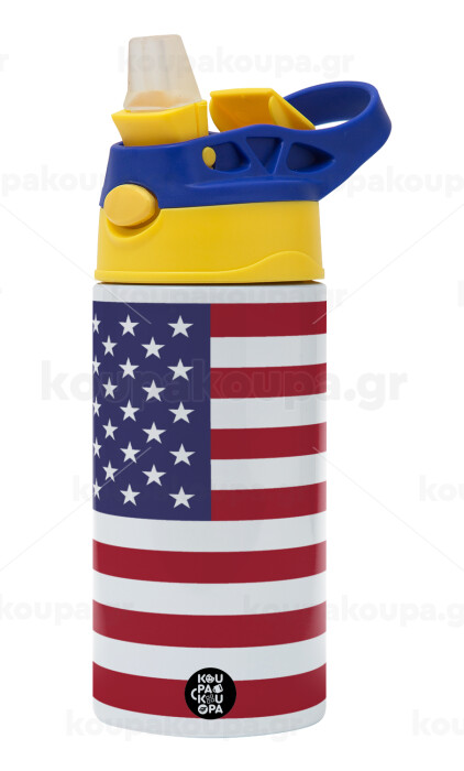 Σημαία Αμερικής, Παιδικό παγούρι θερμό, ανοξείδωτο, με καλαμάκι ασφαλείας, πράσινο/μπλε (360ml) BPA FREE