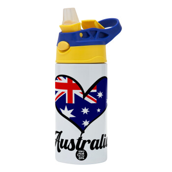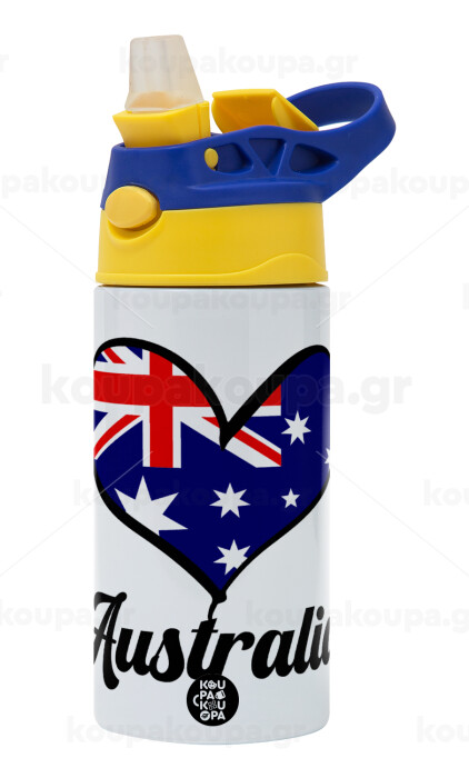 Australia flag, Παιδικό παγούρι θερμό, ανοξείδωτο, με καλαμάκι ασφαλείας, πράσινο/μπλε (360ml) BPA FREE