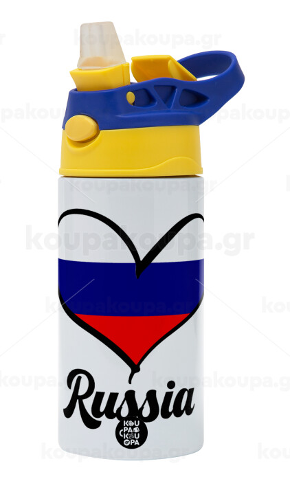 Russia flag, Παιδικό παγούρι θερμό, ανοξείδωτο, με καλαμάκι ασφαλείας, πράσινο/μπλε (360ml) BPA FREE