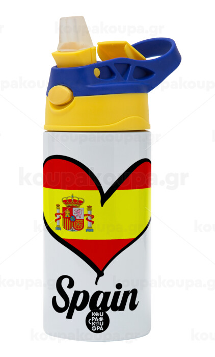 Spain flag, Παιδικό παγούρι θερμό, ανοξείδωτο, με καλαμάκι ασφαλείας, πράσινο/μπλε (360ml) BPA FREE
