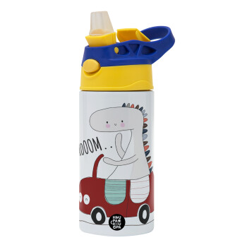 Βρουμ βρουμ, Παιδικό παγούρι θερμό, ανοξείδωτο, με καλαμάκι ασφαλείας, πράσινο/μπλε (360ml) BPA FREE