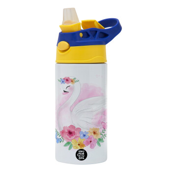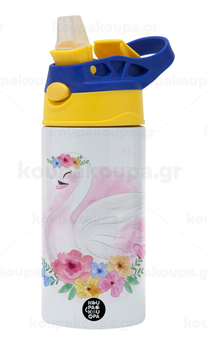 Λευκός κύκνος, Παιδικό παγούρι θερμό, ανοξείδωτο, με καλαμάκι ασφαλείας, πράσινο/μπλε (360ml) BPA FREE