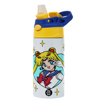 Sailor Moon star, Παιδικό παγούρι θερμό, ανοξείδωτο, με καλαμάκι ασφαλείας, πράσινο/μπλε (360ml) BPA FREE