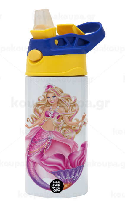 Barbie γοργόνα μπλε, Παιδικό παγούρι θερμό, ανοξείδωτο, με καλαμάκι ασφαλείας, πράσινο/μπλε (360ml) BPA FREE
