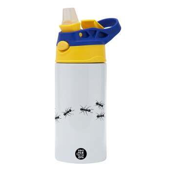 Μυρμήγκια, Παιδικό παγούρι θερμό, ανοξείδωτο, με καλαμάκι ασφαλείας, πράσινο/μπλε (360ml) BPA FREE